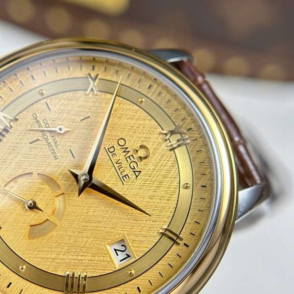 Omega De Ville Prestige Power Reserve Yellow Dial Leather Strap 39.5mm